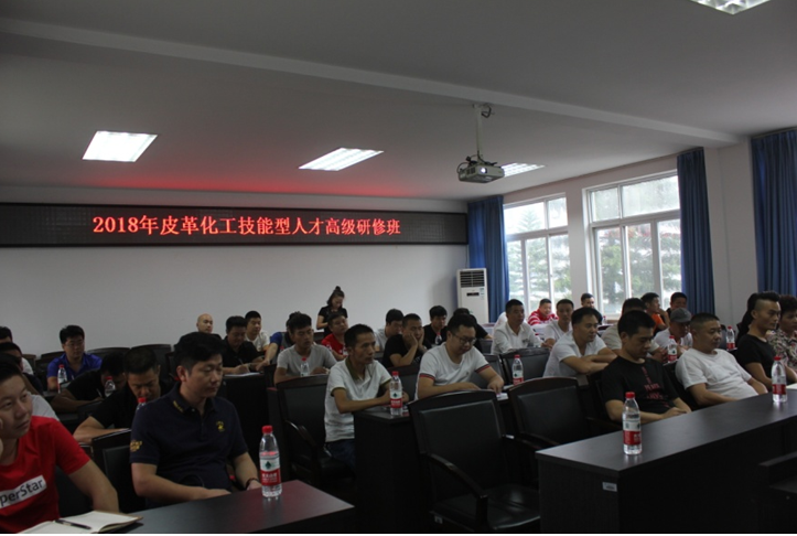 8月25日上午,由温州市皮革化工商会主办的2018年温州皮革化工技能人才高级研修班在金沙官网 开班,此次培训的学员有60余名来自温州市鞋革行业领域内中高级人才,金沙官网 皮革重点实验室柴玉叶副教授等老师为培训班开设鞋用化学品、鞋用胶水、皮革涂饰助剂等内容,培训提升了温州市鞋革行业人员专业技能水平,得到参加培训人员的好评。