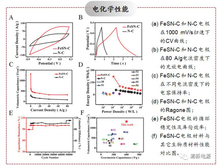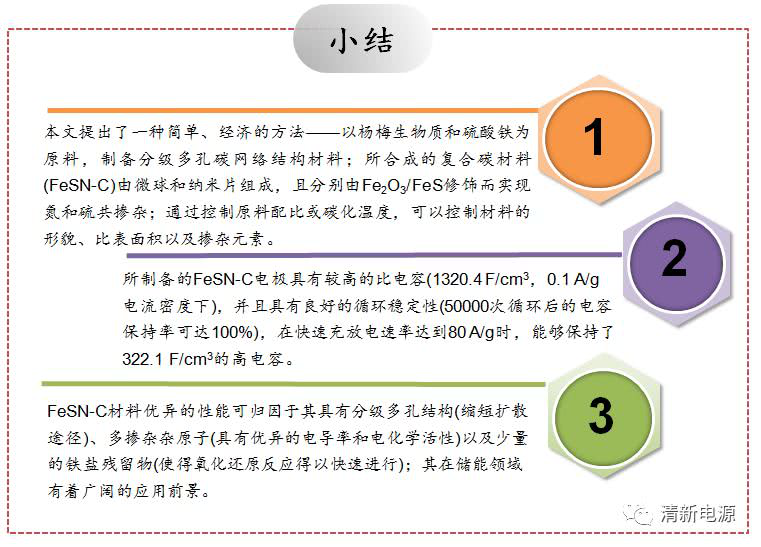 近期,温州大学金辉乐高级实验师、王舜教授、美国阿尔贡国家实验室陆俊研究员以及温莎大学Jichang Wang教授(共同通讯)在Advanced Energy Materials期刊上上发表文章。文章报道了一种简单制备Fe2O3/FeS修饰N,S-共掺杂层状多孔碳材料的方法,通过调控杨梅与硫酸铁之间的水热反应,可以控制其微观结构及组成;该反应制备的碳材料组装而成的超级电容器具有极快的充放电速率(5万次,80 A/g电流密度下)、超高的体积电容(1320.4 F/cm3,0.1 A/g)以及高的能量密度(100.9 Wh/kg,221.9 Wh/L)。