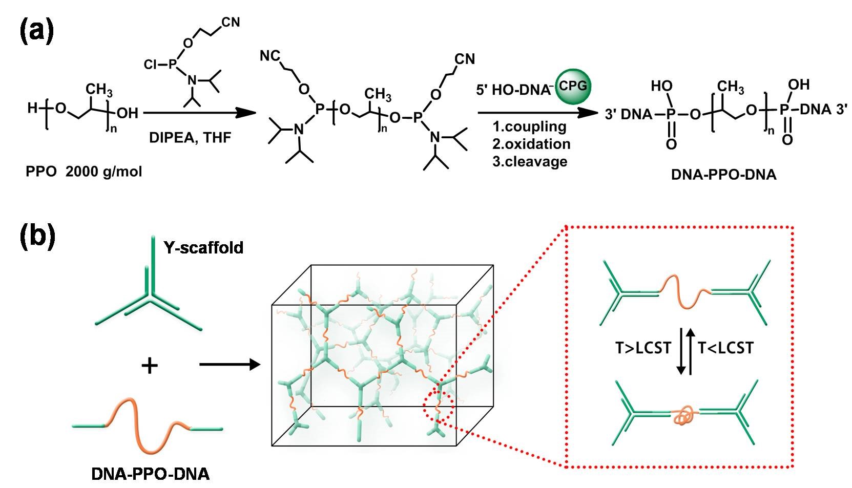 最近,温州大学吴芬博士、时茜教授和清华大学刘冬生教授、中国科金沙官网 化学研究所的范青华研究员共同研究报道了高分子聚环氧丙烷PPO在刚性的三维DNA网络结构中的单分子自我塌缩行为。基于DNA精确的碱基互补配对性质,在骨架中引入具有响应性亲水/疏水转变的高分子链段,在其亲水状态组装成凝胶后再引发转变,由于DNA骨架本身的刚性,这些疏水链段将不能聚集,在单分子水平自塌缩成核,利用流变学测试和小角X射线散射进行表征。并且该一过程是可逆的,为将来嵌段共聚物的成核、生长研究提供一个平台。相关结果已发表在Small(2018,14,170342)上。