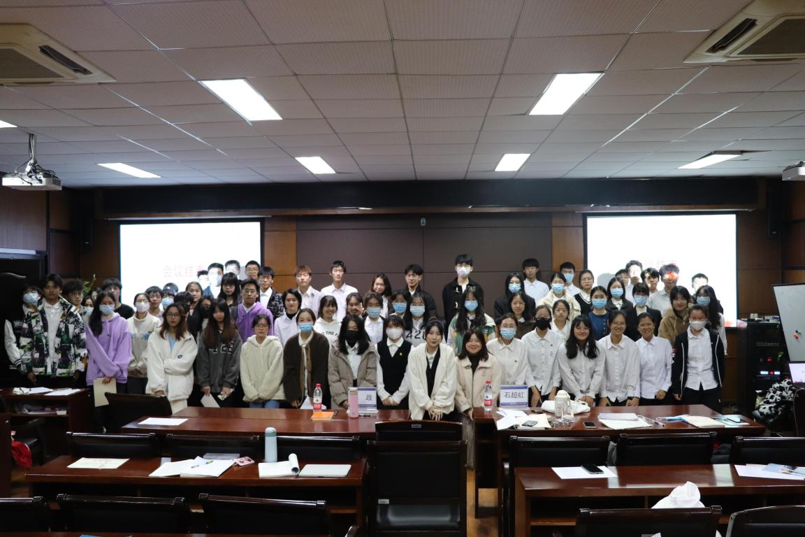团委、学生会指导老师李政老师,学生会主席团成员石超虹同学,参会人员为团委、学生会全体成员。