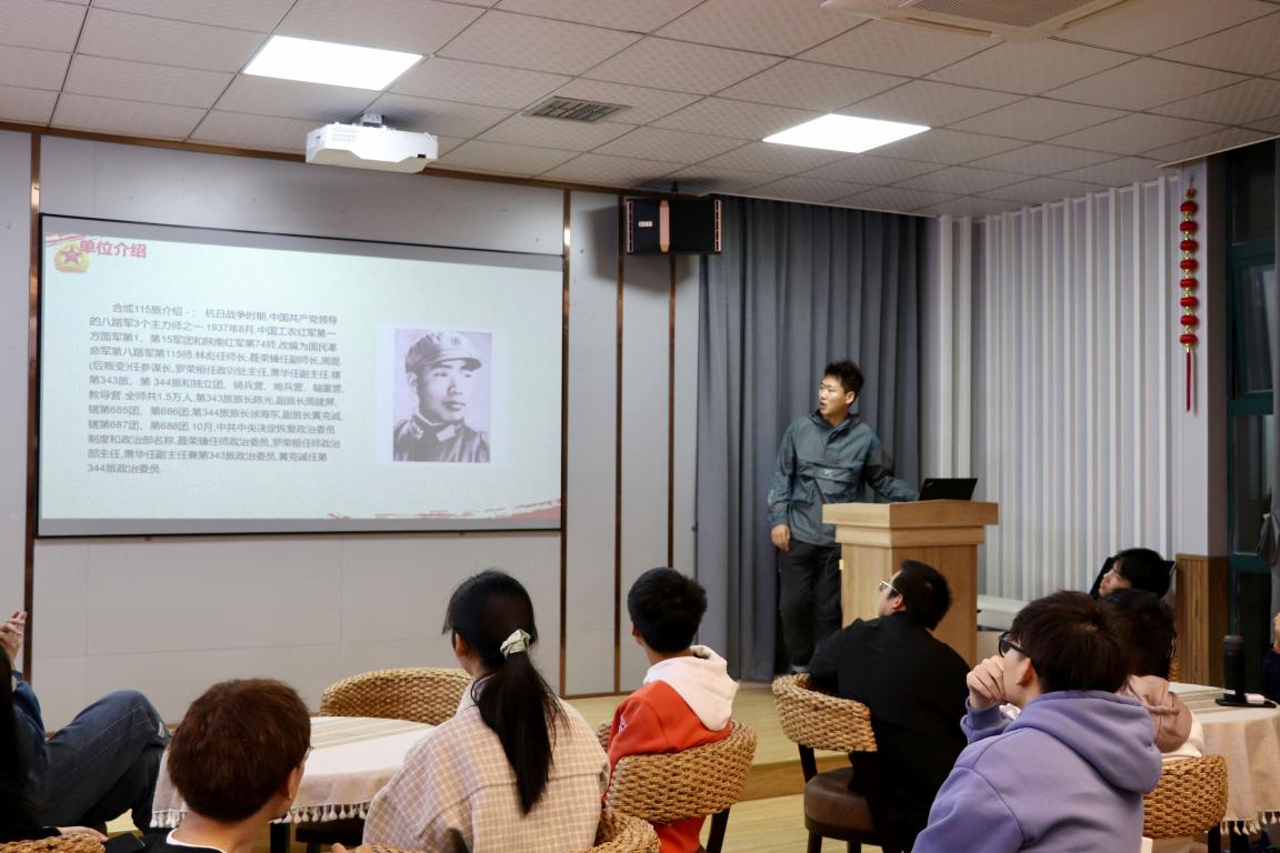 首先由张天祚同学介绍了他的服役单位、部队的基本情况、历史军人名将和解放军战斗序列的分类及相应职责,分享了他在服役期间的军旅经历--遇灾害舍自己救人民、野外驻训、集团军考核、军事演习等既严肃又神圣的经历。其中不乏令人热血、感动和惋惜的经历,这令同学们对军人和部队有了进一步的了解。