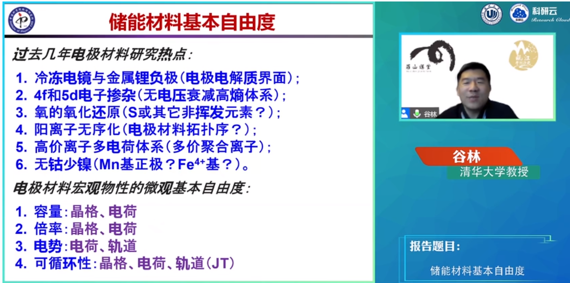 瓯江论坛-清华大学谷林-储能材料基本自由度: //b23.tv/iDxaAm5