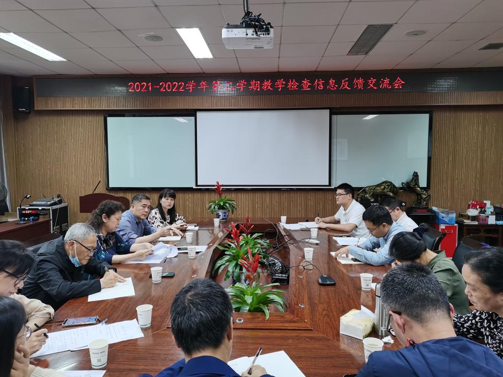 在11B204会议室召开2021-2022学年第二学期教学检查信息反馈交流会。校督导蔡桂平、陈文和应向东,教师教学发展中心科长林丽雪、金沙官网