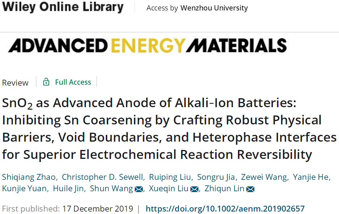赵世强博士有关二氧化锡作为碱金属离子电池先进负极材料的综述性论文“SnO2 as Advanced Anode of Alkali-Ion Batteries: Inhibiting Sn Coarsening by Crafting Robust Physical Barriers, Void Boundaries, and Heterophase Interfaces for Superior Electrochemical Reaction Reversibility”(二氧化锡作为碱金属离子电池先进负极材料:构建稳健的物理屏障、孔隙边界、异质界面抑制锡粗化增强电化学反应可逆性),金沙官网
