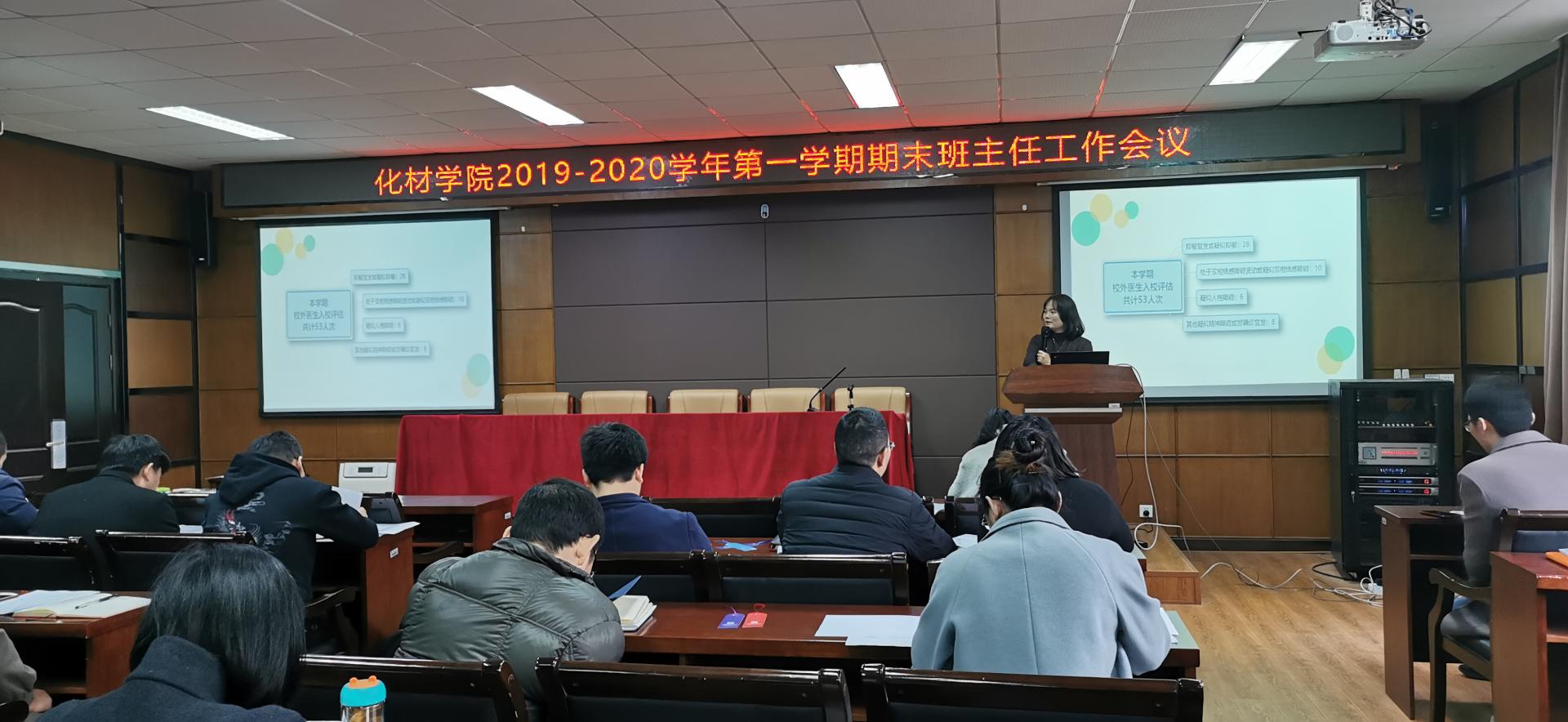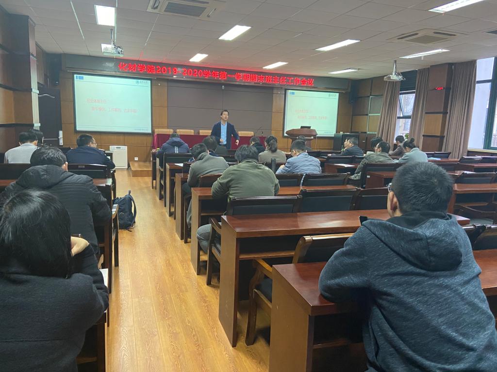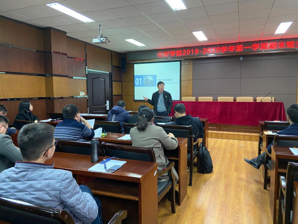 在南校11B208会议室召开了2019-2020学年学期末班主任工作会议。参加本次会议的有院党委书记熊琳、院党委副书记周敬业,学生科辅导员孙玮玮、邹涌彬、武晓岚、薛涛、沈振以及全体班主任。会议由院党委副书记周敬业主持。