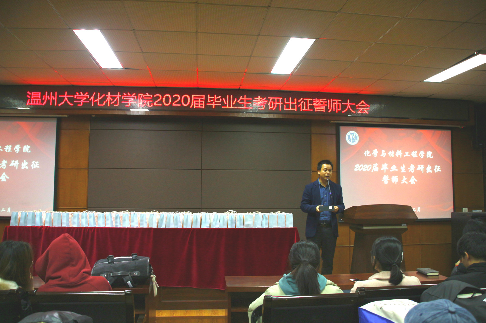 2020届毕业生考研出征誓师大会在208会议室举行。王舜院长、熊琳书记、周敬业书记、2016级班主任、任课老师以及全体2020届考研学生参加本次誓师大会 。