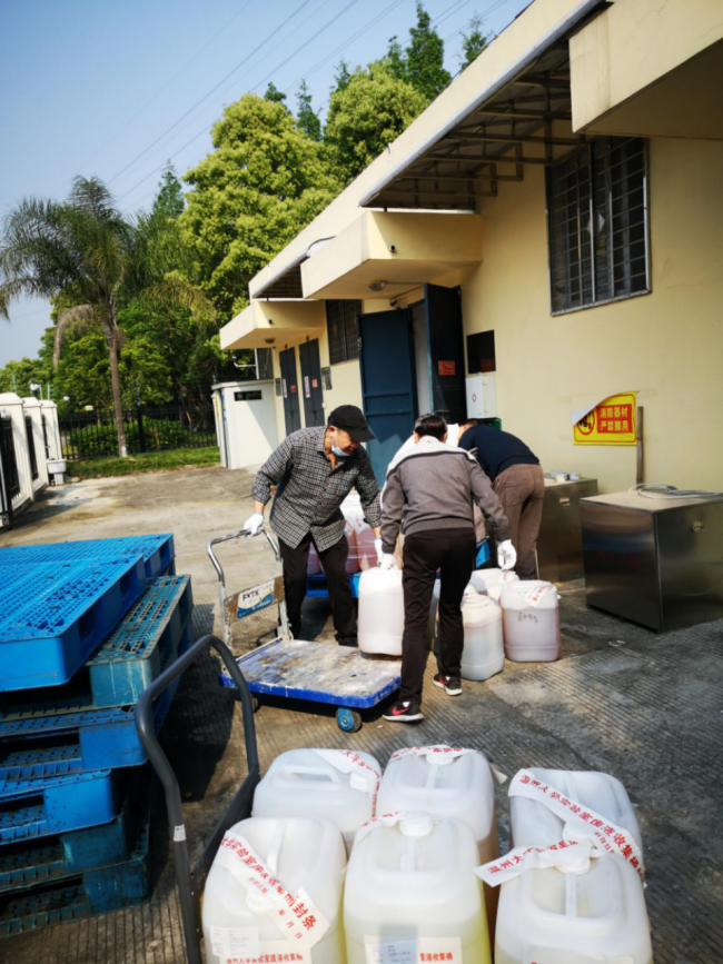 2022年4月19日早上8:10,经过磅、装运、交付危废转运联单后,于上午09:57顺利离校。此次实验室废弃物共转移处置有机废液、无机废液等共计6.404吨,其中金沙官网 5.353吨,生环金沙官网 1.051吨。