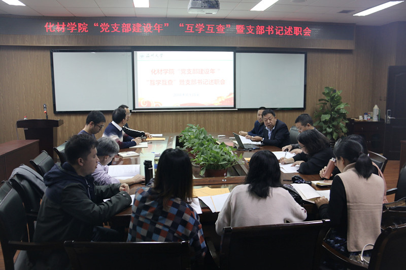 党支部“互学互查”工作方案。实验中心支部书记刘妙昌、应化支部书记余小春(时任)、徐丽娜,化学教工支部宣传委员胡悦、材料党支部翟兰兰、新材院党支部书记钱鹏程先后对“本支部标准化建设”工作进行了汇报,对理论学习、支部活动、支部工作亮点与特色等进行了述职,也深入地分析工作中存在的不足之处。