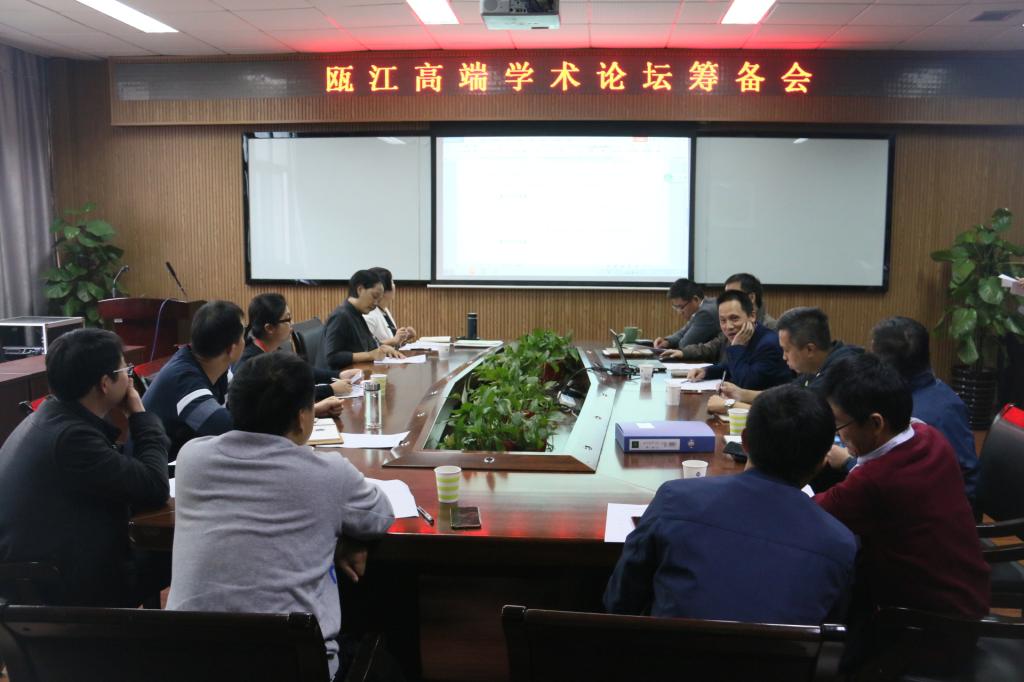 于11月13日下午在11B-204会议室召开了瓯江高端学术论坛筹备会。院长王舜、副院长张兴国、党总支副书记潘从义及相关教师参加本次讨论会,会议由院长助理杨植老师主持。