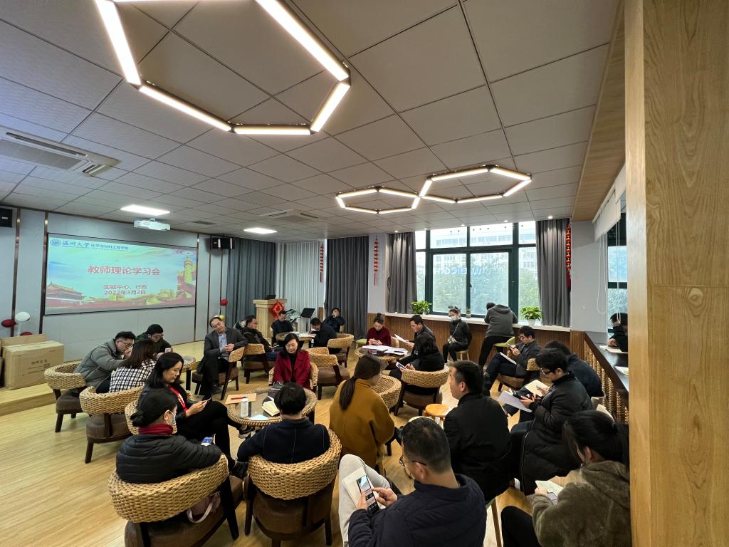 学习会上,各系主任带领老师学习了校领导在新学期教职工大会上的讲话精神、温州市第十三次党代会会议精神等。主要包括深入学习贯彻党的十九大和十九届二中、三中、四中、五中、六中全会精神;深入解读“锚定3456,奋进2022”年度工作主题主线;深入了解金沙官网