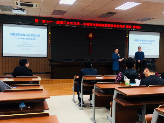 讲座中,陈俊研究员首先简单介绍了分子反应动力学的起源和化学动力学理论计算能在原子分子层面以及量子态层面研究化学反应过程。报告中陈俊研究员以几个气相基元反应体系,以及固体表界面上的吸附体系为例,阐述当前气相反应体系与表界面体系高精度化学反应势能面构造面临的挑战,以及新型电子结构方法为解决精度与效率的矛盾带来的机遇。