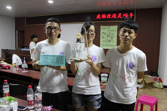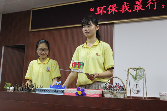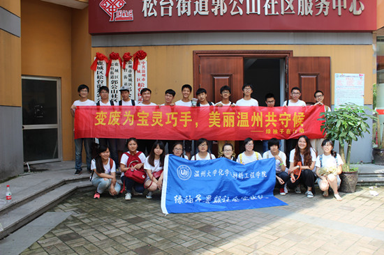 “绿袖子”实践队首次进入郭公山社区进行实践活动,在当地社区居委会会议厅与温州第十四中学同学一道举行“环保我最行,旧物大改造”比赛。