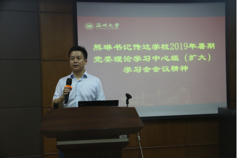 在科研建设、专业建设、人才引进、党建等方面工作的开展情况,并对暑期在岗工作的教师表示感谢。同时,熊琳书记也向与会老师传达了学校2019年暑假党委理论学习中心组的会议精神。