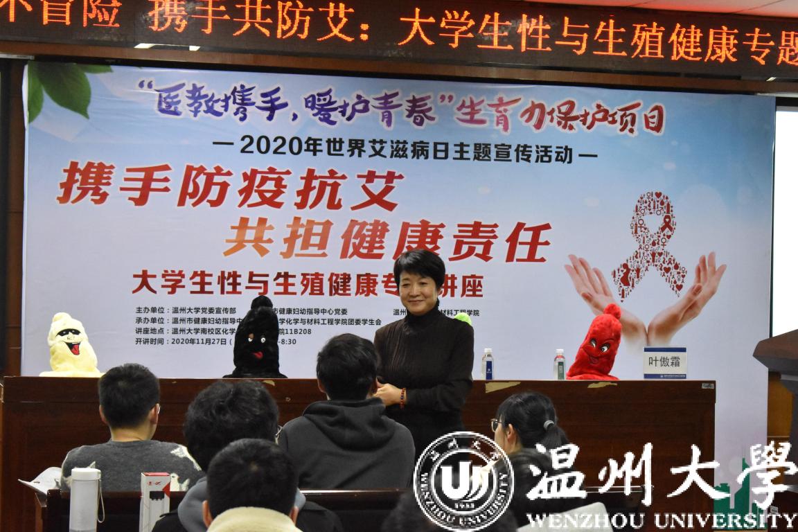 11B-208会议室成功举办,讲座邀请了温州市健康妇幼指导中心保健科科长、副主任医师叶傲霜作为主讲嘉宾。叶傲霜老师以通俗的语言,生动真实的事例,教授了同学们许多有关性与艾滋病的实用知识,提醒同学们一定要在日常生活中注重个人健康的保护,重视血液传播潜在途径的人为阻断,养成文明健康的生活习惯,避免易感染艾滋病危险行为的发生,提升健康素养。