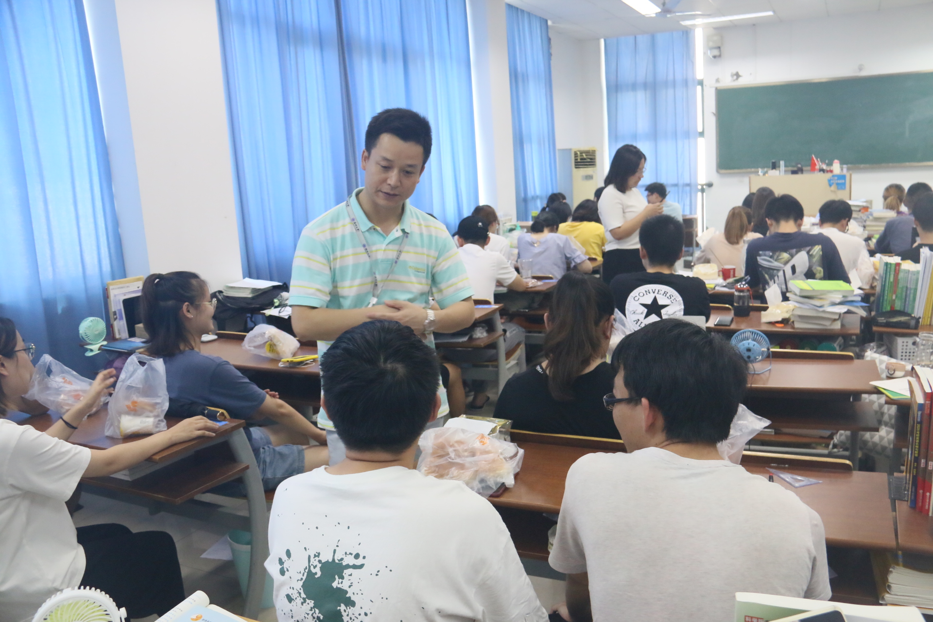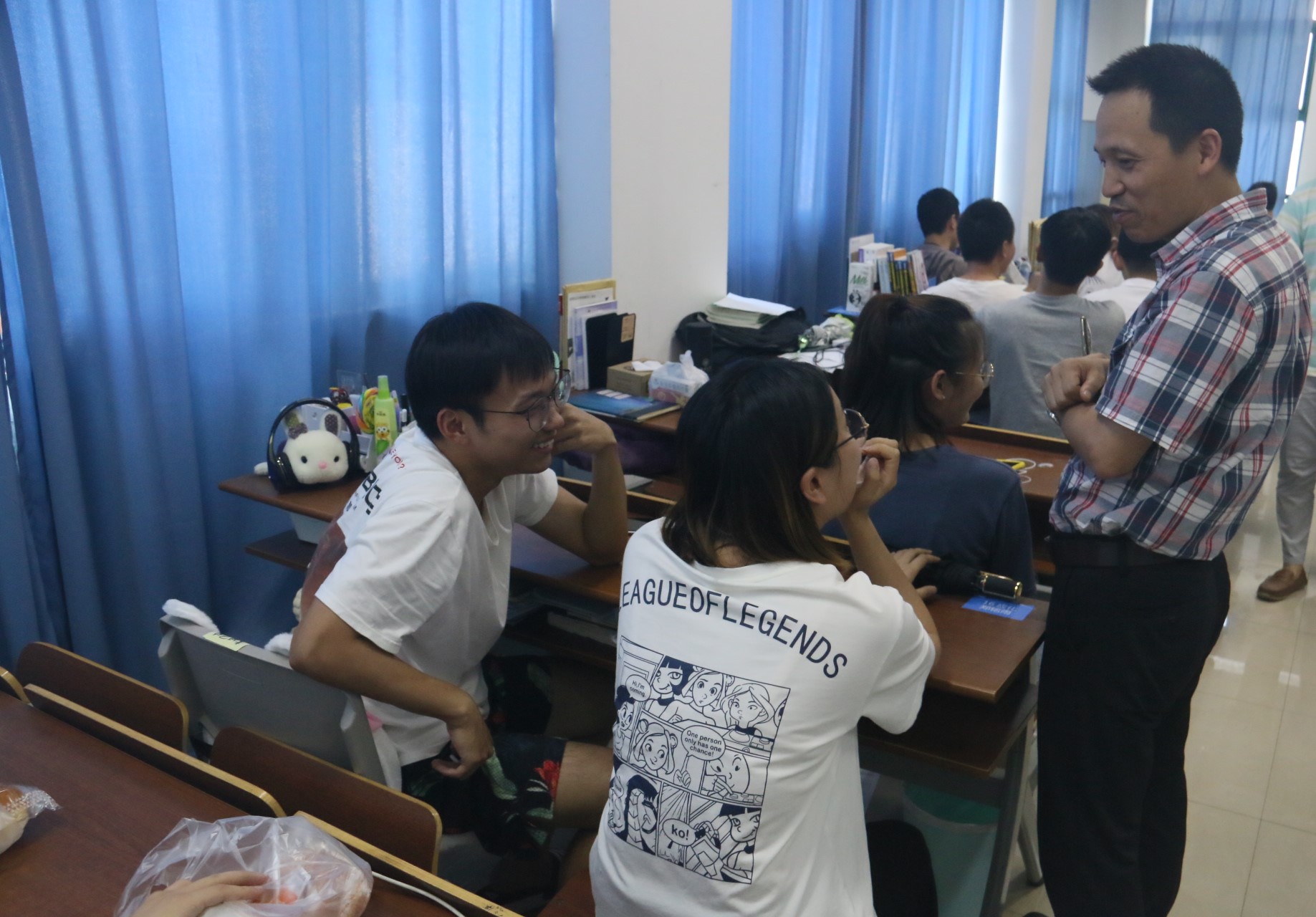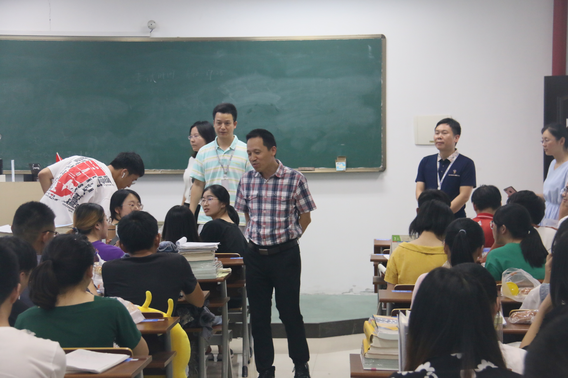 院长王舜、党委书记熊琳、党委副书记周敬业,学生科科长孙玮玮,辅导员邹涌彬、武晓岚一同前往11幢B座512教室看望并慰问暑期留校考研的学生。