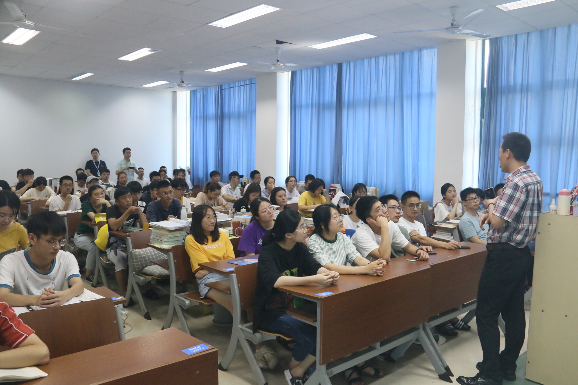 王院长对同学们暑期坚持备考表示肯定和鼓励,并提醒同学们注意劳逸结合,做到高效学习。王院长结合自己的学习经历,对同学们提出三点要求:一是坚定信念,持之以恒;二是树立考研目标,并有所选择;三是及时寻求帮助,注重知识的积累,并积极与老师沟通交流。王院长指出,考研过程考验的是耐力与心性的坚忍与否,在考研剩下的几个月里同学们应当互帮互助,互相鼓励,鼓足干劲收获更多。
