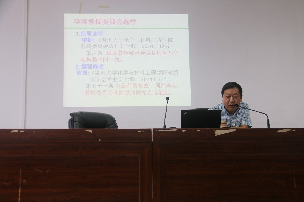 首先,党总支书记方乐平介绍了教授委员会章程、委员选举办法的产生过程,并对其主要内容进行了简要说明。在各系推荐、个人自荐和金沙官网 研究产生候选人的基础上,经全体教职工以无记名投票形式,填写选票并依次投票。经过严谨的计票、唱票环节,监票人宣布计票结果。产生了新一届教授委员会委员,马剑华、马德琨、王舜、兰云军、吴华悦、余卫芳、胡茂林(按姓氏笔划顺序排列)等7人当选。