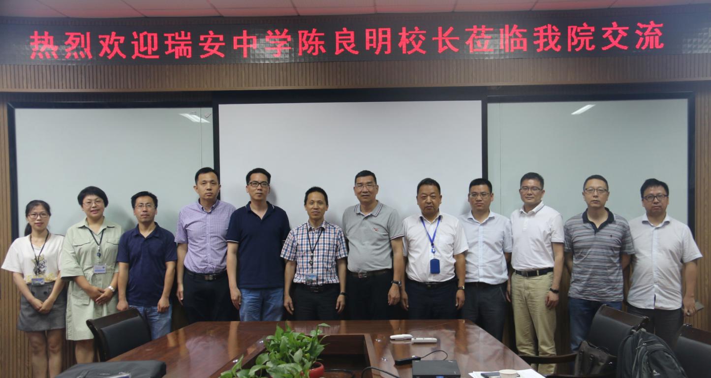 在教育教学、师资建设、招生就业等方面的工作成效。同时高度肯定了瑞安中学近年来取得的成绩,希望双方今后进一步加强交流合作,在教育、教学和管理等方面进行深入研究、高度融合,围绕人才培养工作,全方位推进教育创新。