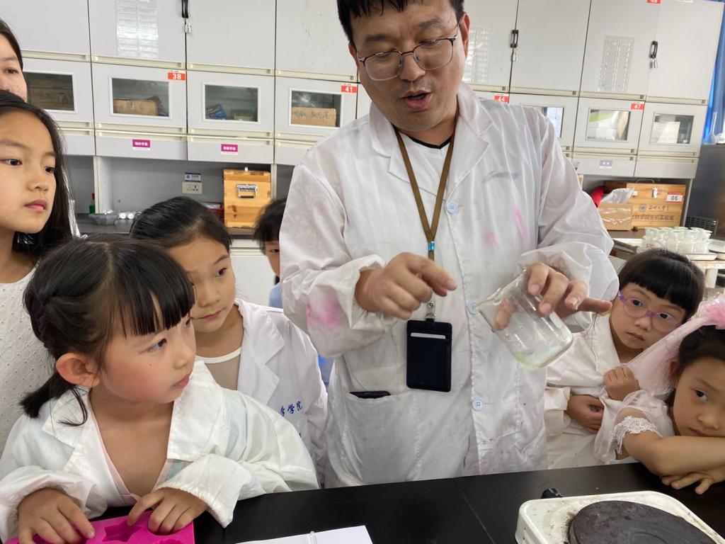 教工子女进入实验室体验做手工香皂,为小朋友们送上特别的“六一”儿童节礼物。