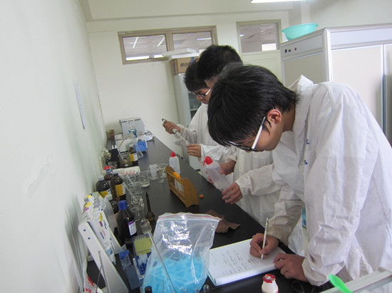 1日下午,绿袖子实践队成员来到3C-404进行分析实验,对牛奶中的增塑剂含量进行了测定。本次实验,由金沙官网