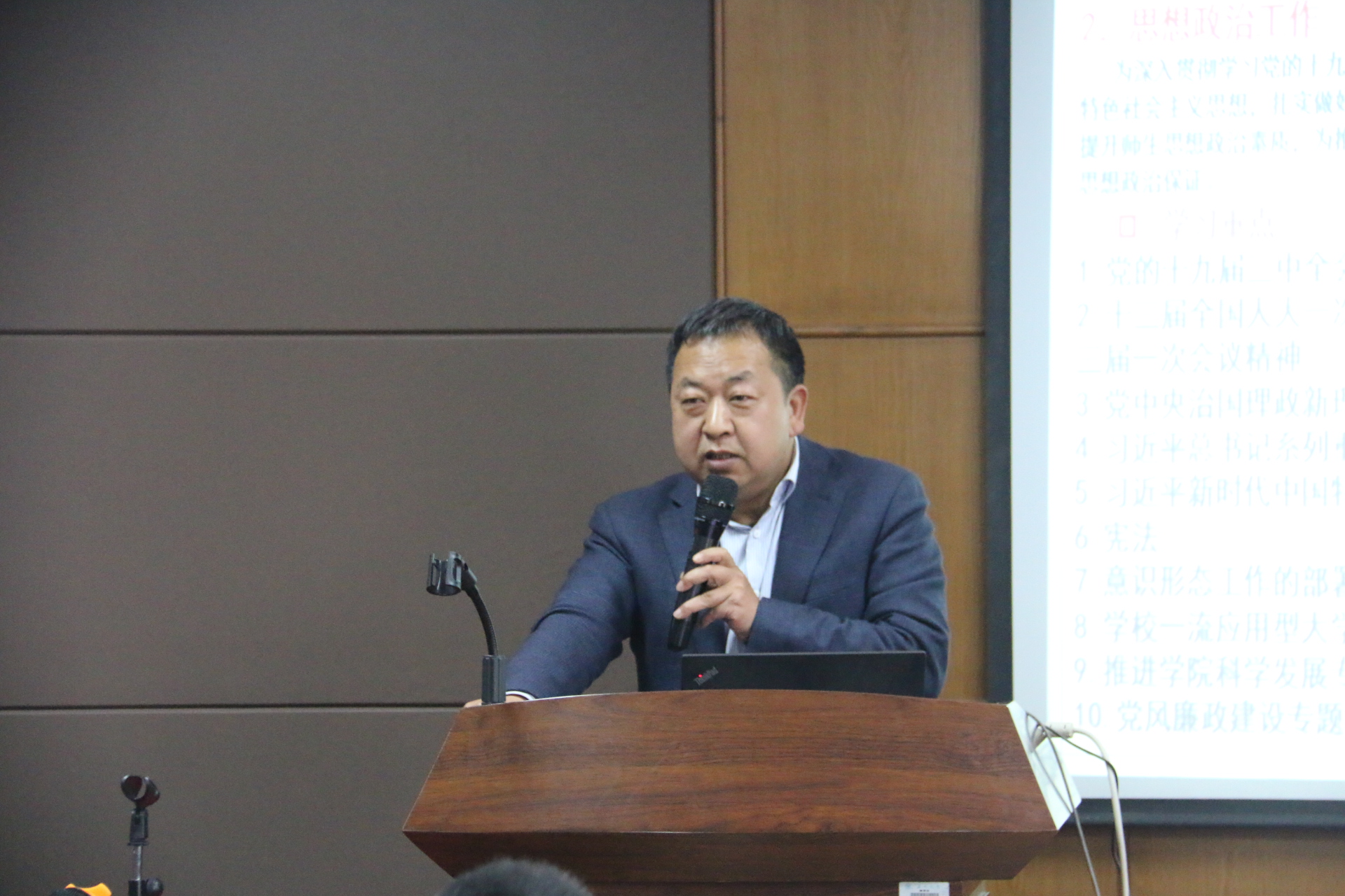 随后,副院长杨小平就本学期的教学工作安排进行说明,重点强调做好四大工程:“专业工程-师范专业论证”,“质量工程-日常教学管理”,“就业工程-学生工作服务”和“招生工程-可持续发展”。