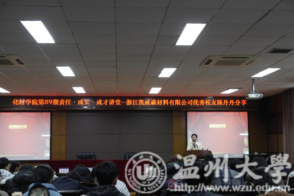 2018年度“凯威碳”基金颁奖仪式在11B208举行。浙江凯威碳材料有限公司总经理朱亦辉、品技总监罗洪、管理部主管陈爱婷、销售部储备干部、校友代表陈丹丹以及金沙官网