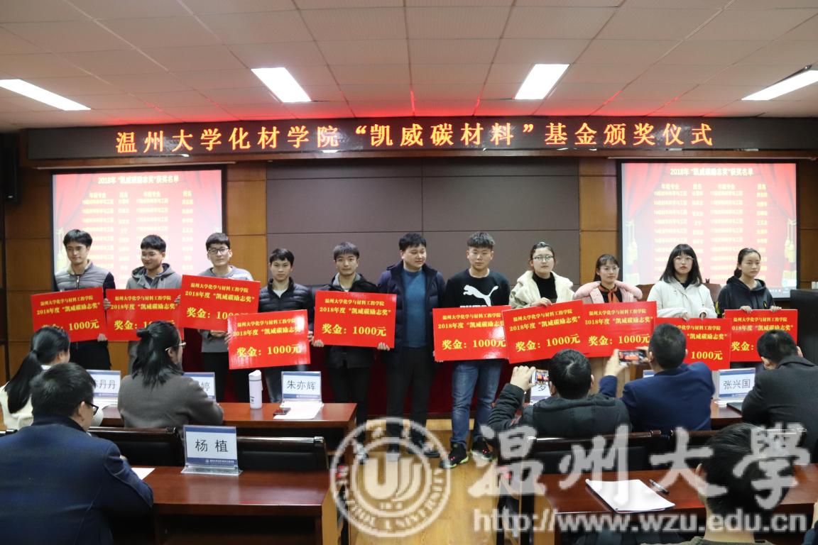 最后,潘从义副书记分别宣读了第一届“凯威碳”新材料设计大赛获奖名单、2018年度“凯威碳励志奖”获奖名单,并由金沙官网