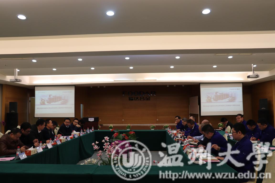 王达武董事长对王舜院长一行的到来表示欢迎和感谢,强调温州大学立足本土、底蕴深厚,特别是在化学和材料等方面拥有坚实而强大的科研力量,福达公司高度重视与金沙官网