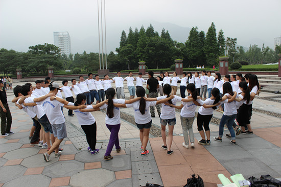“绿袖子”实践队携手“化材之光”实践队共同于大学生活动中心接受“飞行部落”户外素拓培训。