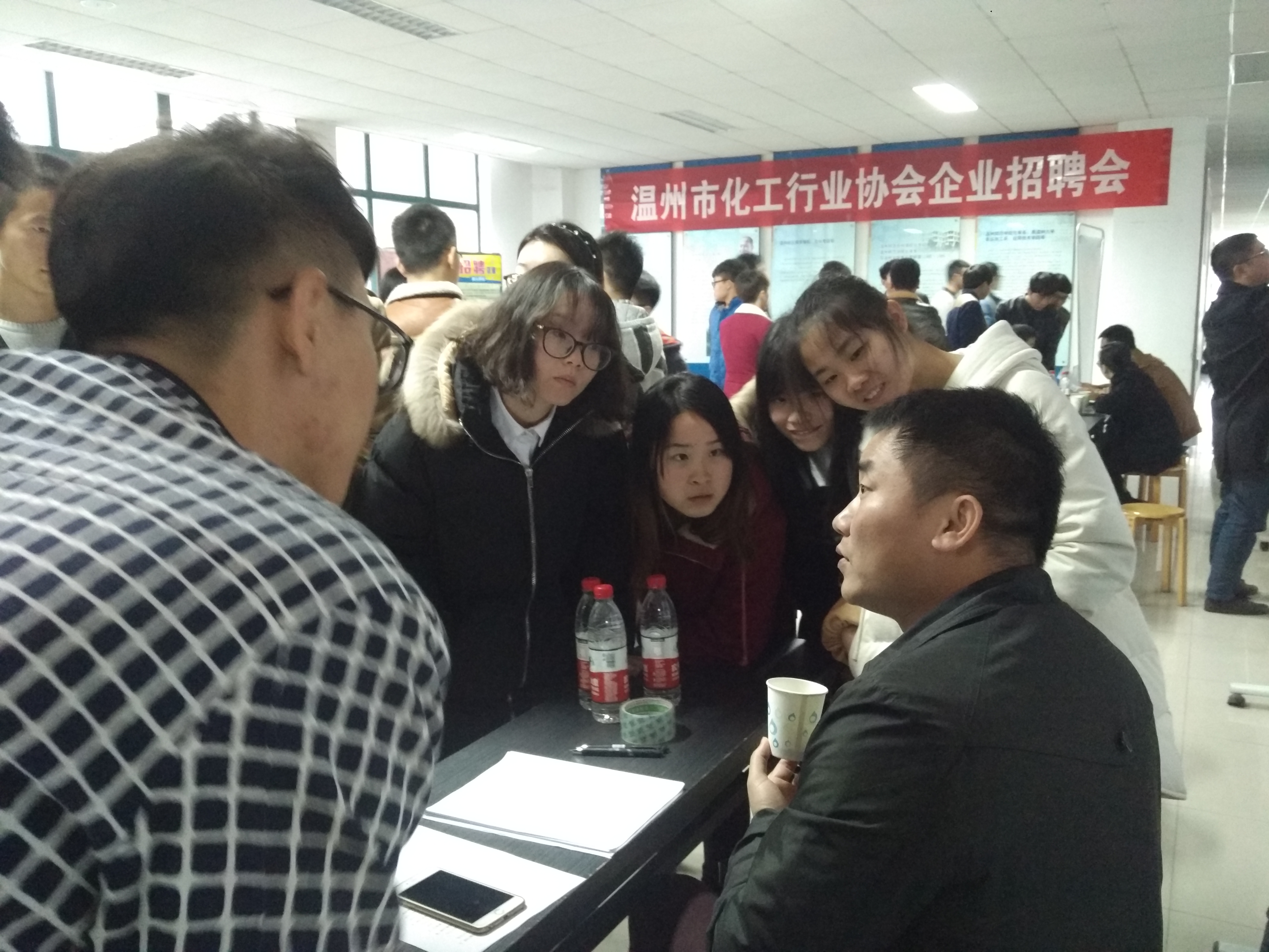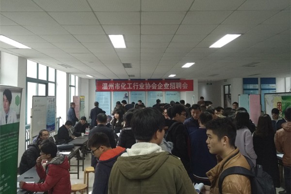下午13点30分,在化材楼B栋二楼大厅,由温州市化工行业协会主办的企业招聘会正式开始。在场招聘的有十一家公司,包括华峰集团有限公司、浙江禾本科技有限公司、一帆生物科技集团有限公司等各化工专业公司。前来应聘的大多数为12级学生,13级的学生也有部分,他们前来,一方面是为了寻求实习岗位,积攒工作经验,另一方面是为了更加了解自己专业的相关就业行情。应聘者的简历内容清晰,能很好的凸显自己的个性和能力。招聘会现场气氛融洽。本次招聘会主要以招工程师、销售代表、检验员和技术员为主。金沙官网