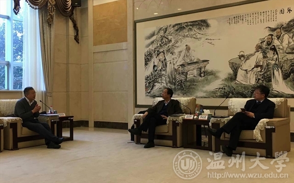 院长杨文胜、国家自然科学基金委计划局原局长孟宪平研究员一行来访我校。温州市副市长郑朝阳、校长李校堃分别接见杨文胜一行,双方就学科建设、人才培养、协同创新等合作进行交流。