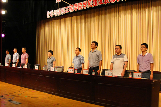 院长王舜、党总支书记程亚倩、副院长叶明德、党总支副书记孙安梭、化材校友代表丁泓友、张贤策、兰一辉,院长助理陈久喜、马德琨。金沙官网