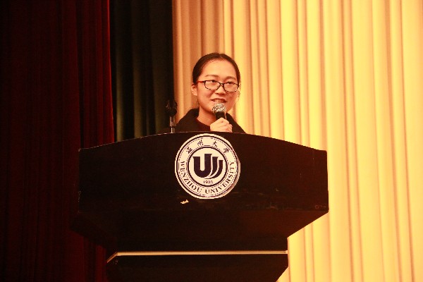 会议第二阶段为校友、教师和在校学生代表分享成长经验。金怀东、余佳佳两位校友、陈久喜老师和胡君美同学依次上台分享了自己的经历。他们以自己的亲身经历为切入点,结合自己的成长经历描述了自己眼中的金沙官网