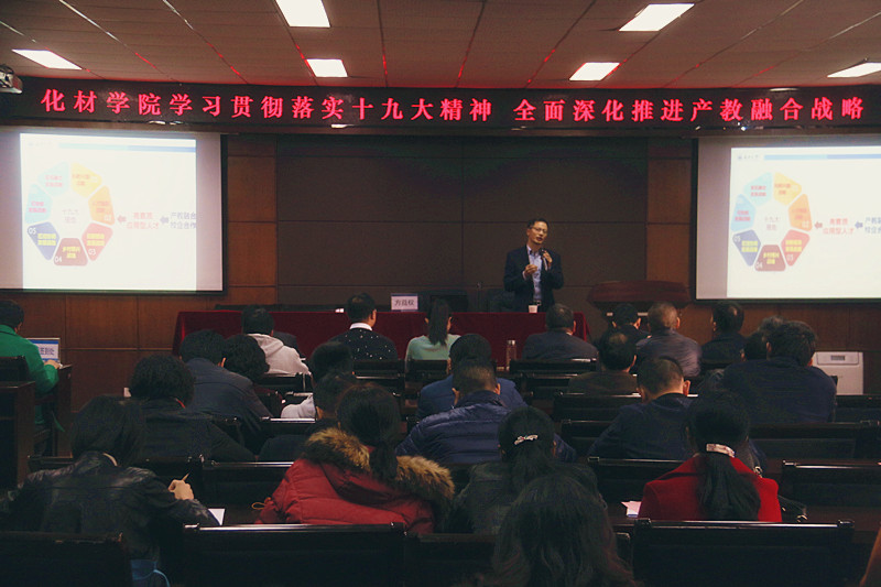 邀校党委委员、副校长方益权在化材楼11B-208室作题为《学习贯彻十九大精神 全面深化推进产教融合战略》的专题报告,本次报告会由院长王舜主持,金沙官网