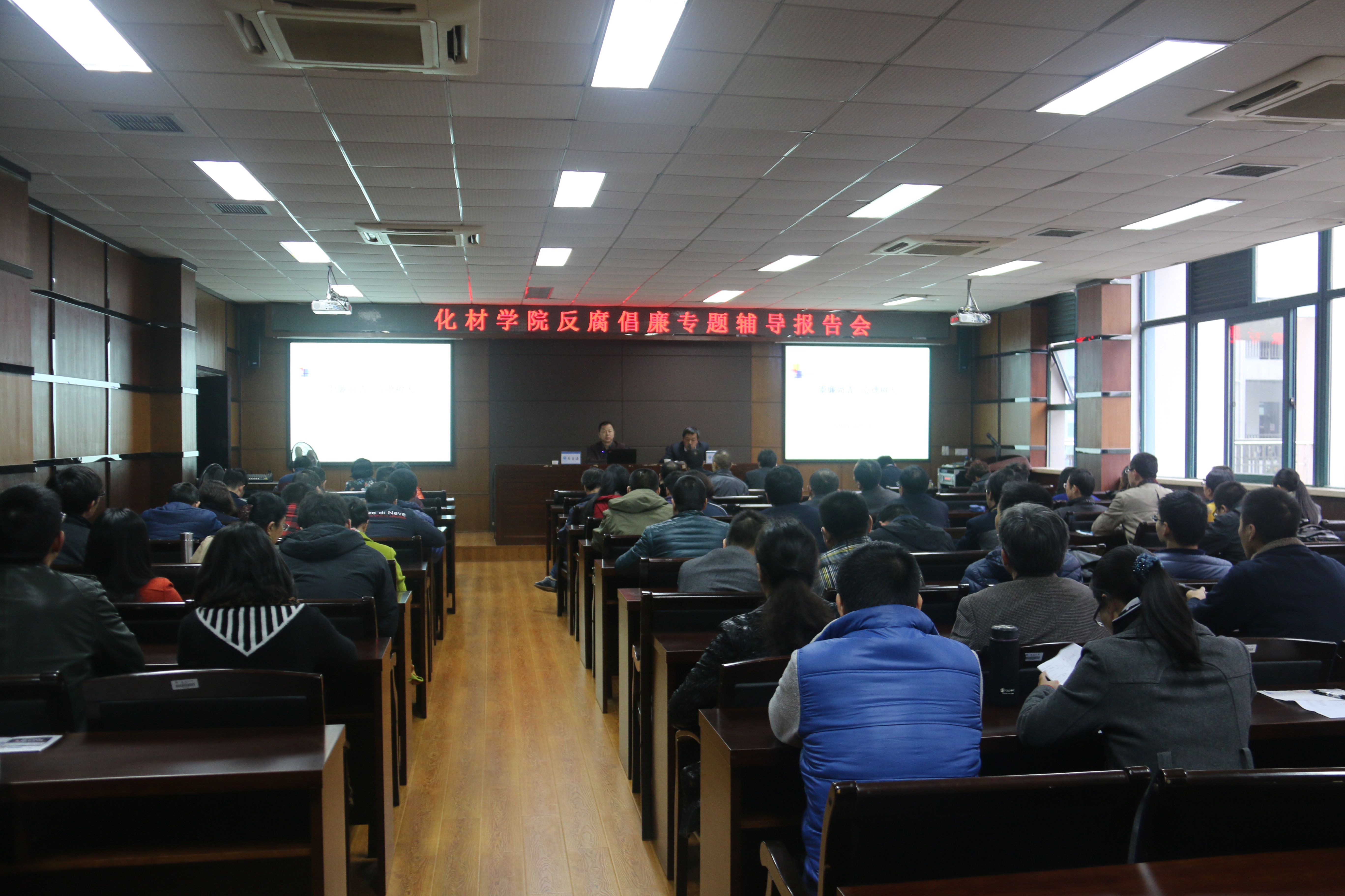 在化材楼11B-208会议室召开反腐倡廉专题辅导报告会,学校纪委书记吴金法给全院教职工作了题为《崇廉尚洁 立德树人》的专题报告,金沙官网