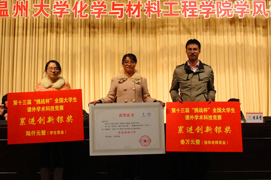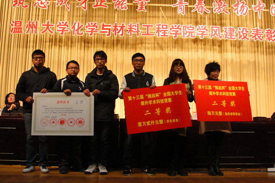 大学生课外科技活动评比优秀学生、2013年度校院“十佳百星”学子、校级和院级2013-2014学年第一学期优良学风班及其他奖项,与会领导为获奖班级、教师、学生颁发荣誉证书和奖品。