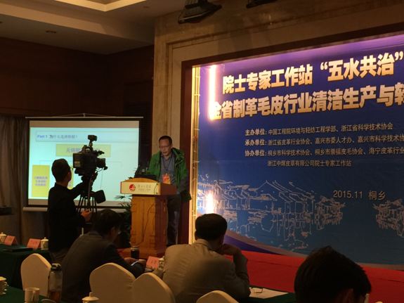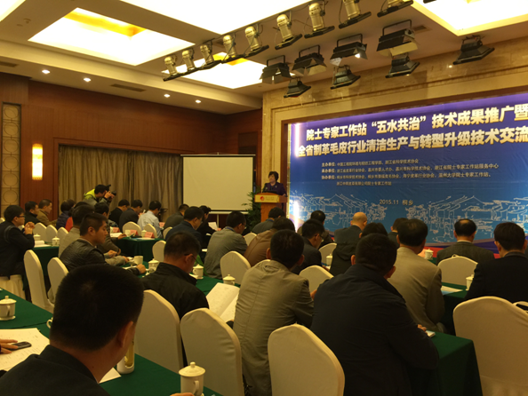 2015年11月9日,院士专家工作站‘五水共治’技术成果推广暨全省制革毛皮行业清洁生产与转型升级技术交流会”在桐乡东方大酒店召开。本次会议由中国工程院环境与轻纺工程学部、浙江省科学技术协会主办,浙江省皮革行业协会、嘉兴市委人才办、嘉兴市科学技术协会、浙江省院士专家工作站服务中心承办。来自全省各地制革毛皮企业共120多人参加会议。温州大金沙官网