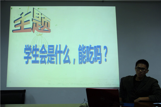 团委学生会第四次全委会在11B-208准时召开。本次会全委会独辟蹊径,选取了这么一个比较俏皮活泼的主题——学生会是什么,能吃吗?全体学生会成员参与了此次舒心轻松的全委会。