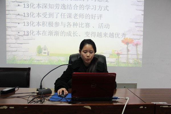 在主持人宣布评比正式开始以后,14化本,12化本,13化本,12应化,13化工,14应化,13应化,14化工,13研二,14研一,14材料,14研二,13研一的各班级代表依次上台作了展示。各班基本以PPT的形式介绍了自己班级学习、实践、素质拓展等情况。其中13化工班别出心裁采用了视频加IEbook的方式展现了自己的班级。虽然各个班级都有自己的特色,但温馨和谐,团结向上是每个班的共同点。每个人的心中都有一个“优良学风班”,定义不尽相同,但它一定是我们愿意留下青春回忆的地方!