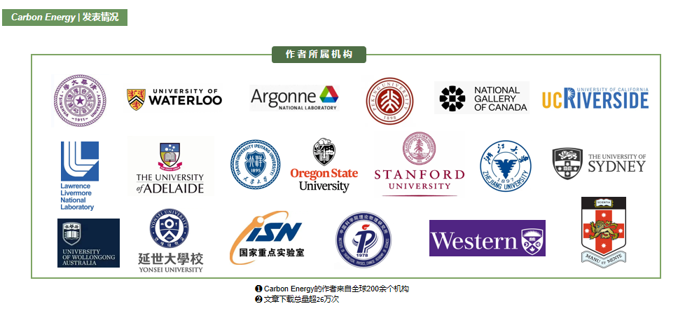 Carbon Energy在多个期刊评估指标中均取得了不俗的成绩,这是期刊建设的阶段性成果反馈,也从一定程度上反映出CarbonEnergy获得了全球同行学者的关注和认可。值此之际,Carbon Energy主编和编辑部衷心感谢期刊编委团队、青年编委团队的帮助和奉献;感谢作者、审稿人、读者和各界人士的信任和支持。“路漫漫其修远兮”,Carbon Energy将继续前行,与广大科研工作者共同“碳”索未知,“能”见未来!
