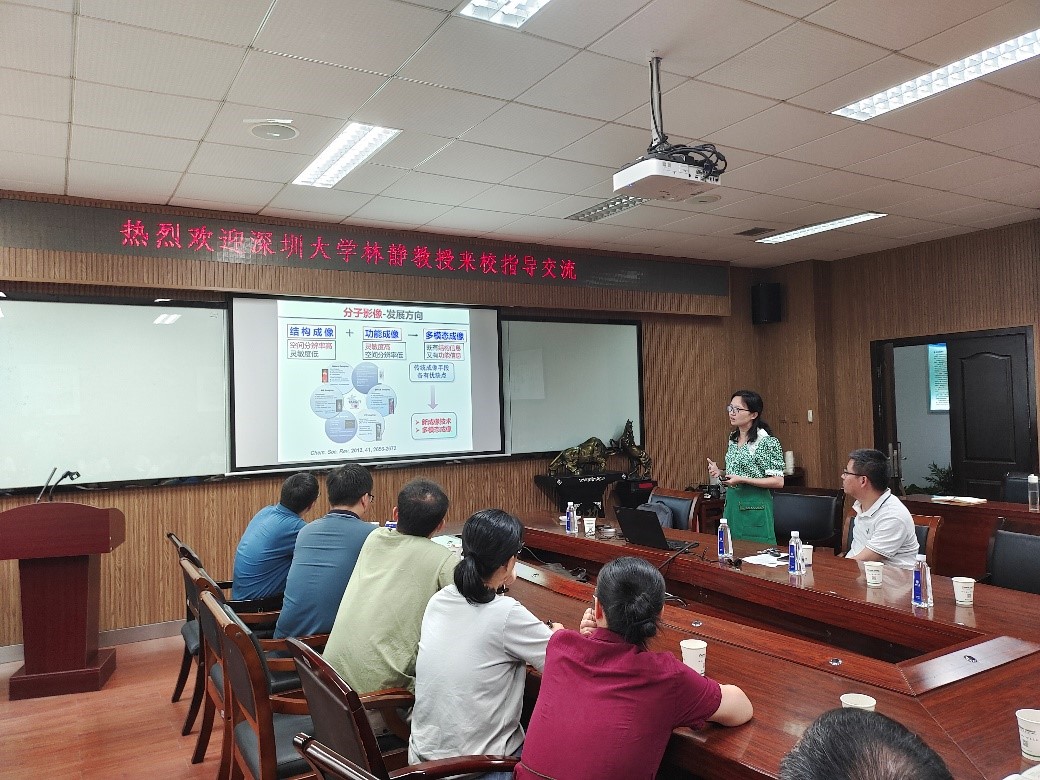 在讲座中,林静教授首先对自己走出母校之后的求学经历、目前工作单位及课题组的研究工作进行了简单介绍。随后,林静教授从分子影像的研究意义、发展历程以及目前存在的巨大挑战等方面展开报告,林教授主要从分子影像检测成像、分子探针用于荧光成像、诊疗一体化等三个方面介绍课题组近几年的研究成果。林教授报告内容丰富、讲授逻辑缜密、精彩纷呈,具有较强的学术氛围,引起了大家浓厚的兴趣。会后,林教授与在场师生就报告相关内容进行了深入的交流,并对自己课题组内博士招生进行了简单的介绍,欢迎对分子影响感兴趣的学生报考。