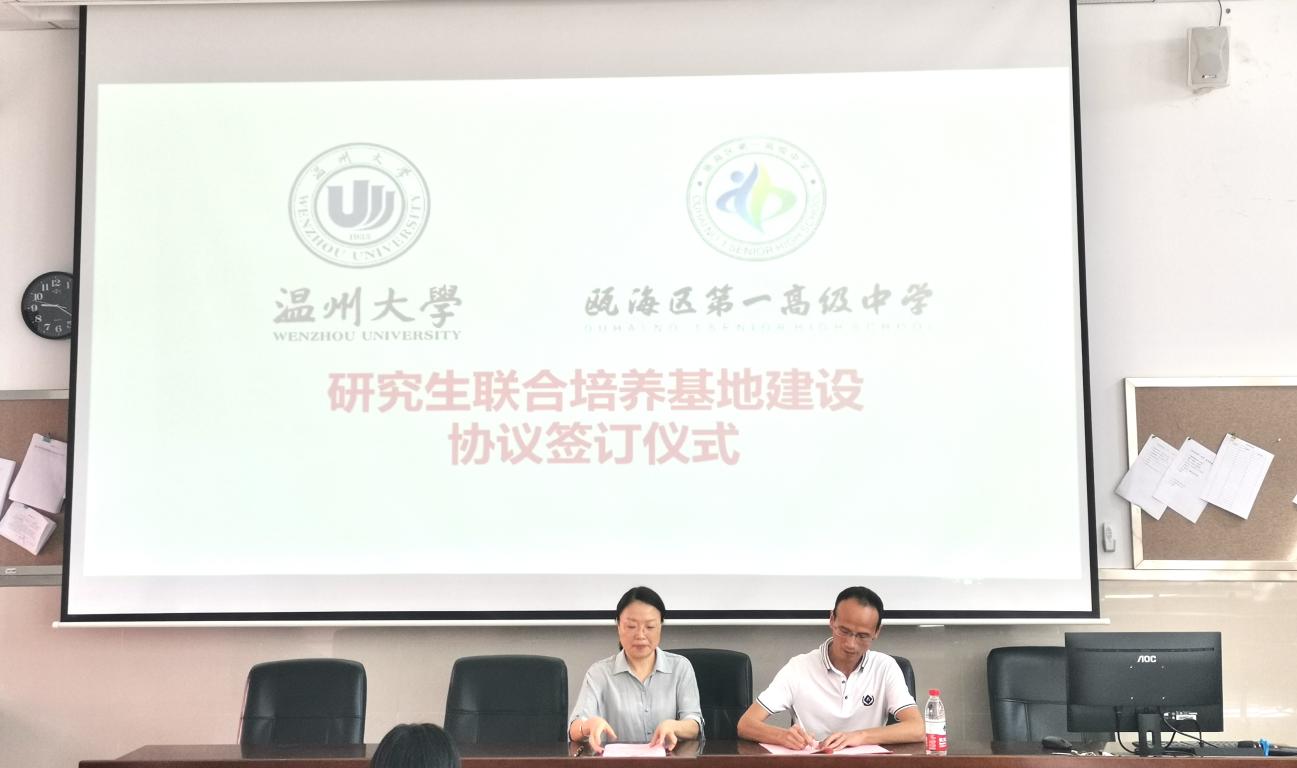 与温州市瓯海区第一高级中学共建学科教学(化学)教育硕士专业学位研究生联合培养基地的签约仪式在瓯海一高活动室举行。金沙官网