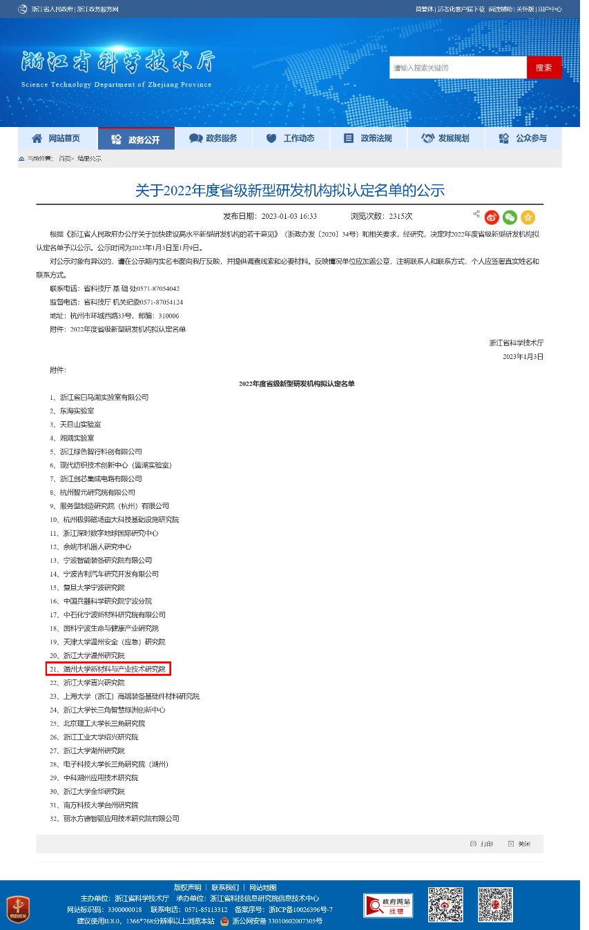日前,浙江省科学技术厅正式公布2022年度省级新型研发机构认定名单,认定32家企业(研究院)为2022年度浙江省新型研发机构。金沙官网