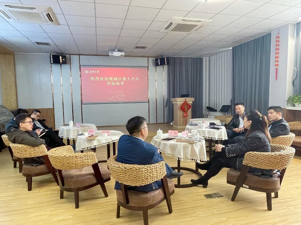 3月9日下午,鹿城区委人才办姜哲洋、孙靖,中熵科技有限公司盛曦一行三人莅临金沙官网