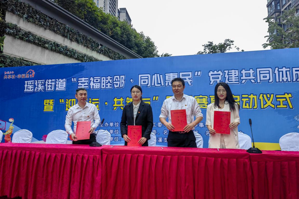 新材院支部与温州市龙湾区瑶溪街道工作委员会、杭州银行股份有限公司温州科技支行、浙江立地信息科技有限公司的党建共同体签约仪式于瑶溪社区名都苑小区顺利举行。瑶溪街道党工委副书记陈淼,党工委委员郑重,党工委委员、人武部部长周云恩、金沙官网