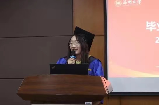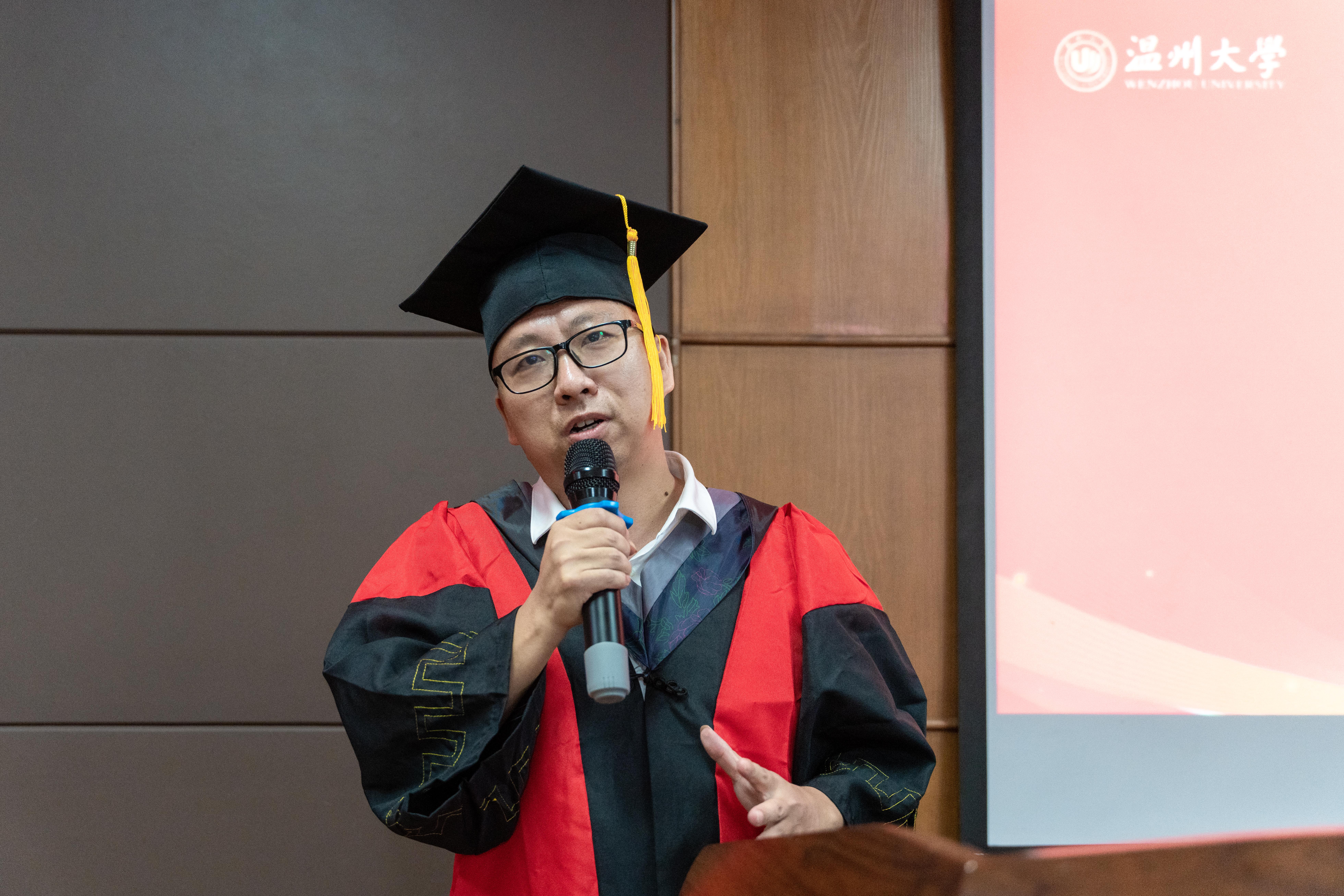 致辞。他向毕业生们表达了最热烈的祝贺和最诚挚的祝福。同时,他对即将踏上新征途的同学们提出了三点期望:一是要敢于自信,领先的学科基础、雄厚的师资力量铸就化材人自信的基石。二是善于学习,希望化材学子秉承温大“求学问是,敢为人先”的校训精神,在不同的行业中向不同的优秀人物学习。三是勇于奉献,在奉献中实现人生价值和社会价值。最后,杨院长也欢迎同学们无论身处何地都不忘常回母院看看。