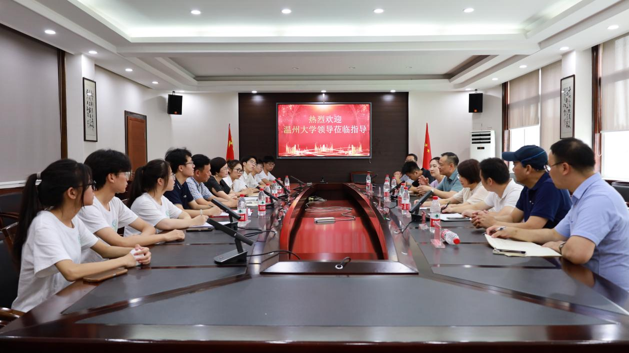 潘玉驹副校长一行参观了南浦中学惠民路分校,深入了解实践队员的课堂教学情况,并在会议室召开座谈会。南浦实验中学惠民路分校胡华辉副校长在会议上致欢迎辞,感谢温州大学与南浦实验中学的联动合作为南浦实验中学学生带来有趣的科学实验与课堂讲座,将积极为活动开展提供便利平台。