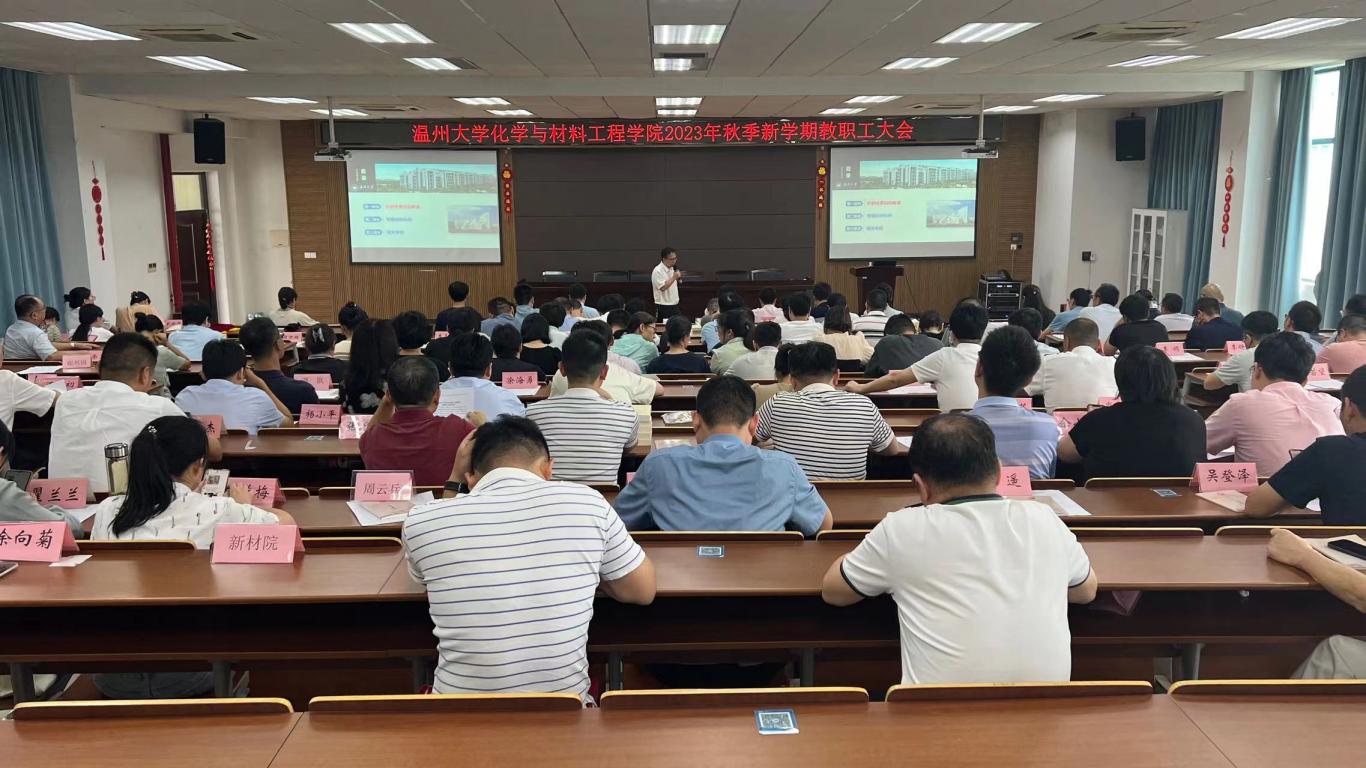 在11C401会议室召开2023年秋季新学期教职工大会,会议由党委副书记周敬业主持,全体教职工参加。