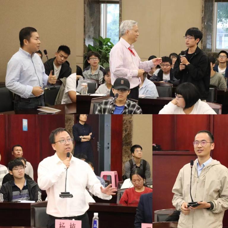 在交流提问环节,唐本忠院士与在场的师生就多项科学问题进行了深入的探讨,耐心的解答了提出的专业学术问题,其深厚的科研功底、幽默得体的言谈赢得了在场师生阵阵热烈的掌声。