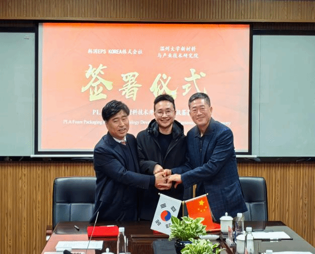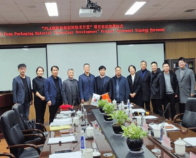 黄承哲教授与韩国EPS KOREA株式会社的合作项目“聚乳酸泡沫包装材料开发”顺利签约。韩国EPS KOREA株式会社赵哲来会长、全明天副社长、斗本株式会社李大熙会长、王晓霞总经理,温州大学金沙官网